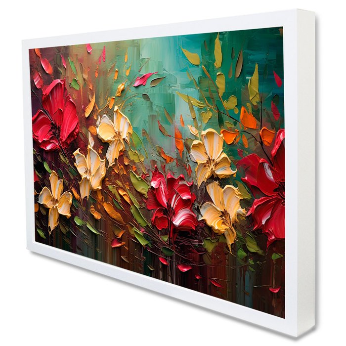 Quadro Decorativo Caixa Floral Luxo Harmonia das Flores TaColado Moldura Caixa 3cm Branca sem Vidro