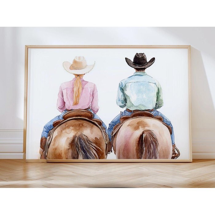 Quadro Decorativo Casal Cowboy e Cowgirl Boiadeira Vaqueiro Cavalo Rodeio Decoração