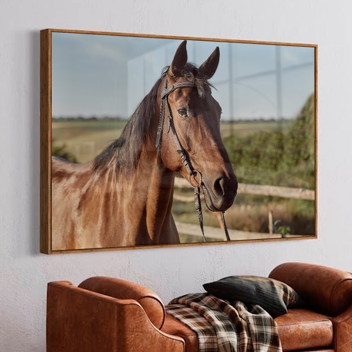 Quadro Decorativo Caixa Alta com Vidro Cavalo de Perfil