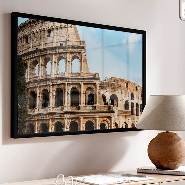 Quadro Decorativo Caixa Alta com Vidro Cidade Roma Itália - Coliseu