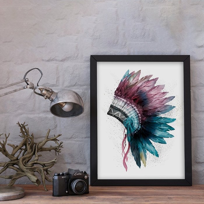 Quadro Decorativo Cocar Colorido 30x40 cm - Moldura Preta