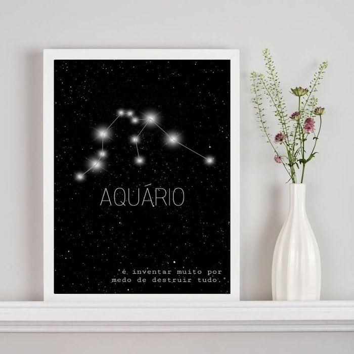 Quadro Decorativo Constelação Signo Aquário 45x34cm:madeira Branca