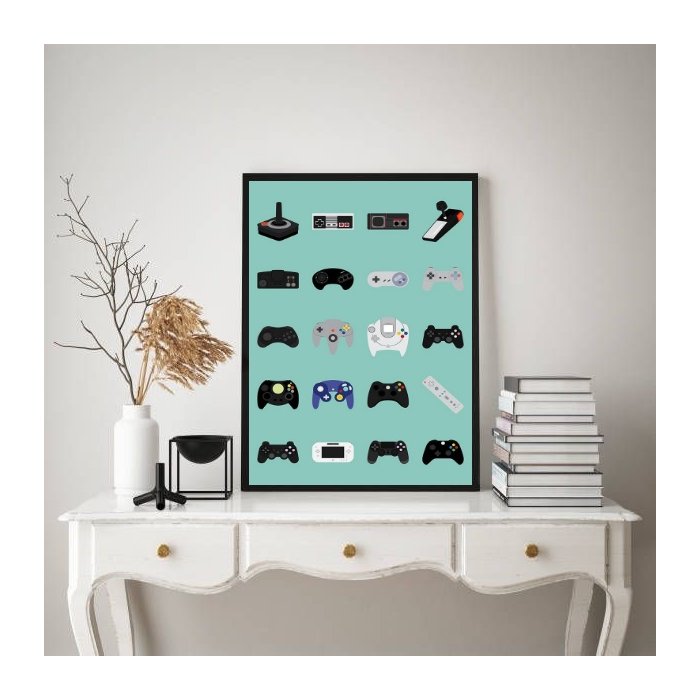 Quadro Decorativo Controles Vídeo Game 33x24cm - com Vidro:moldura Preta