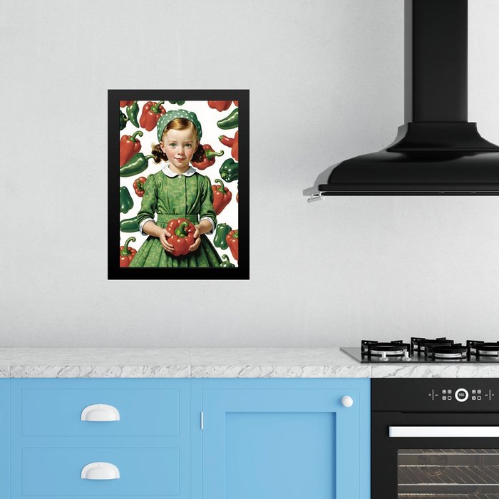 Quadro Decorativo Cozinha Menina com Pimentões 24x18cm - com Vidro:moldura Branca