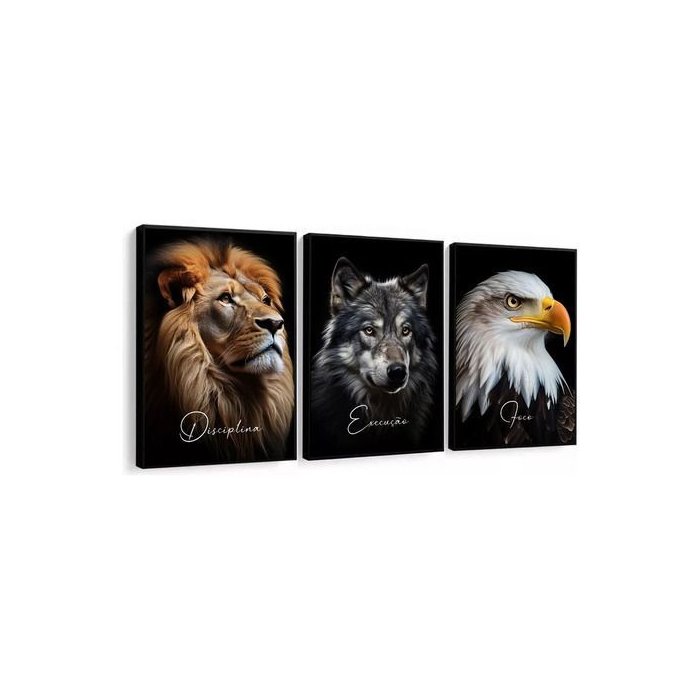 Quadros Decorativos com Moldura Cada quadro mede 40cm x 60cm contando com a moldura As molduras tem 2cm de profundidade Nossas imagens são impressas em alta resolução e material brilho de excelente qualidade Molduras 100% de madeira As imagens não desbotam nem amarelam, dispensando o uso de vidro A cor da moldura é igual a foto do anúncio O valor é para o kit de 3 quadros com moldura Cada kit tem embalagem própria, garantindo que cheguem em perfeito estado As cores podem variar em até 15% dependendo do monitor Indicações e Cuidados Os quadros podem ser pendurados deixando um espaçamento de 3cm entre eles, para manter a harmonia das imagens Eles são leves e práticos, podendo ser fixados também com fita dupla face de alta qualidade Cada quadro tem o espaço atrás para ser apoiado em pregos ou parafusos para que fique rente a parede Evite expor as imagens diretamente ao sol para evitar o possível desgaste Não deve ser utilizado álcool ou produtos que contém esse elemento para a limpeza A EMPRESA Com experiência de anos no mercado na produção de quadros e transformação de ambientes, a Universo Quadros se destaca pela qualidade dos produtos e atendimento aos clientes com transparência e atenção, vendemos e entregamos com rapidez e segurança. Faça o seu pedido conosco! Observação Após a compra, o endereço apresentado não pode ser modificado, fique atento no preenchimento da sua compra!