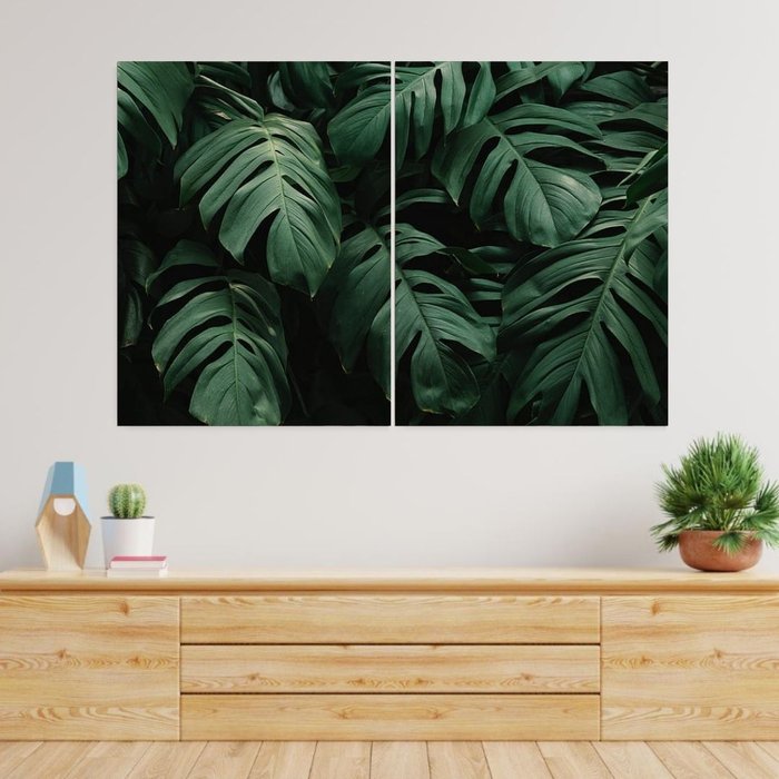 Quadro Decorativo - Duas Telas - Folhagem Costela de Adão - 120x80cm
