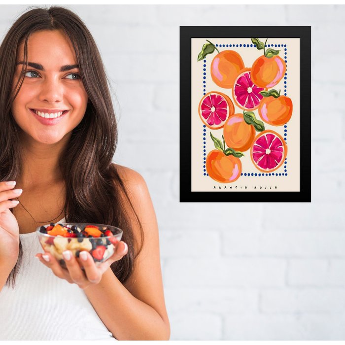 Quadro Decorativo Elegante para Cozinha - Laranja 33x24cm:moldura Preta