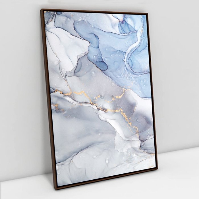 Quadro Decorativo em Canvas Abstrato Mármore Azul Celeste TaColado Moldura Flutuante 4,5cm Madeira 6