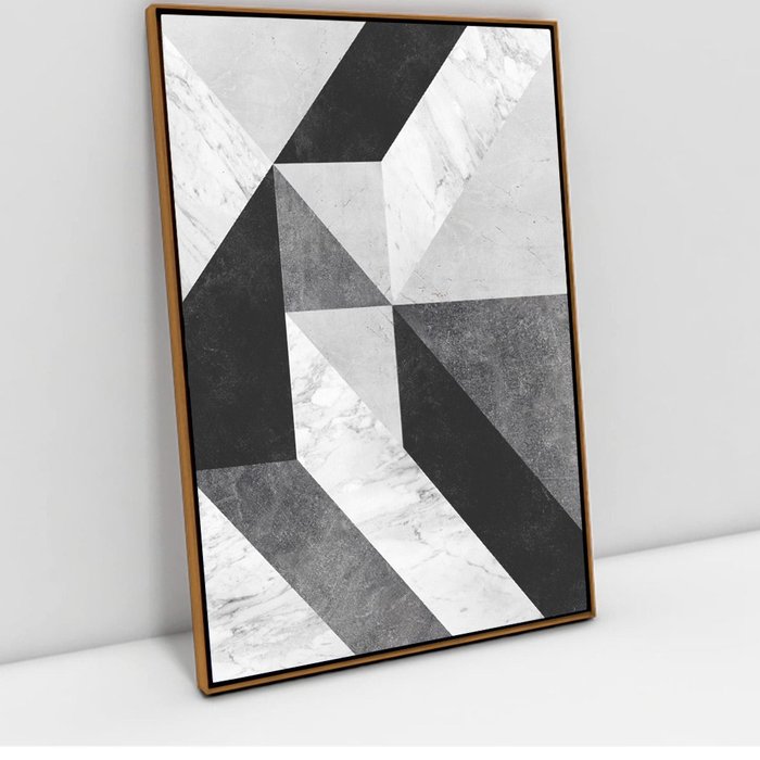 Quadro Decorativo em Canvas Geométrico Mosaico Moderno TaColado Moldura Flutuante 4,5cm Freijó 120 x