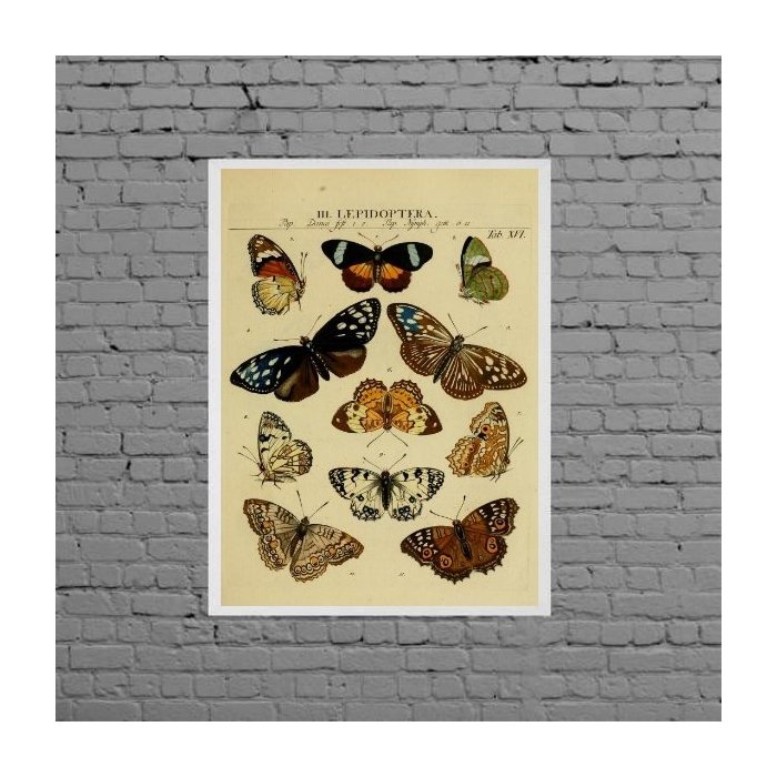 Quadro Decorativo Espécie De Borboletas 45x34cm - com vidro:Madeira branca