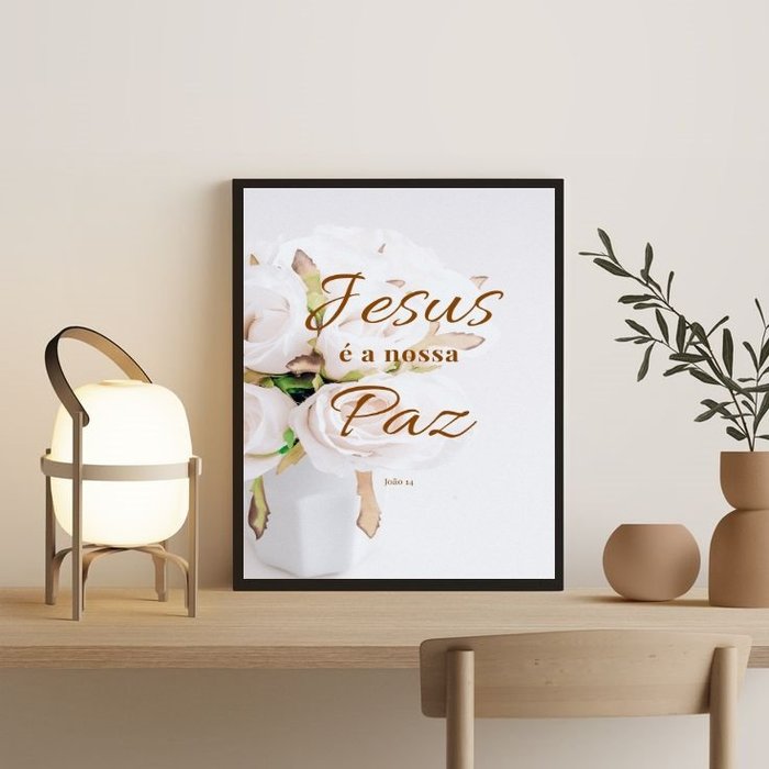 Quadro Decorativo Evangélico Jesus É a Nossa Paz 24x18cm:madeira Branca