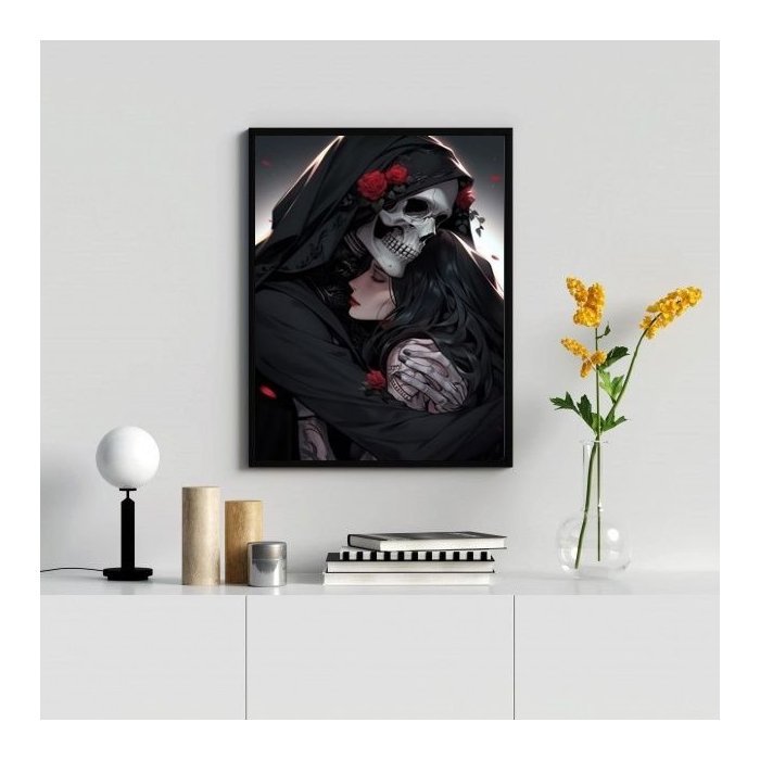 Quadro Decorativo Exu Caveira e Pombagira 33x24cm:madeira Branca