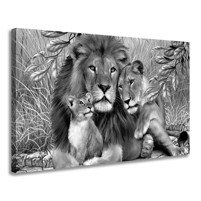 | Nome | Quadro decorativo família leão preto branco para sala quarto |