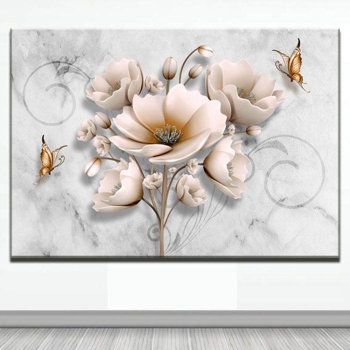 Quadro Decorativo Floral Borda Infinita em Canva 60 x 120cm - FLORAL 1