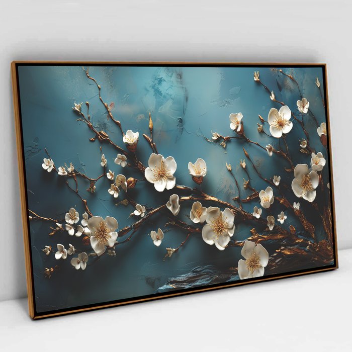 Quadro Decorativo Floral Luxo Flores Clássicas em Tela Canvas Tacolado Moldura Flutuante 4,5cm Freij