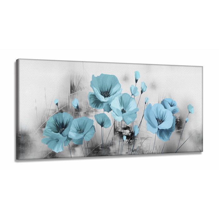 Quadro Decorativo Flores Azul Claro 130x60 em Tecido Canvas Ilustrado