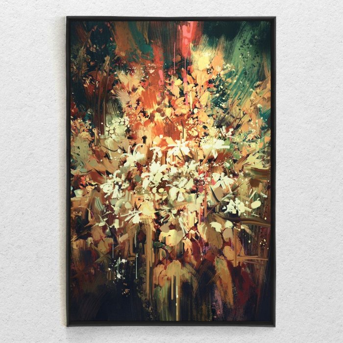 Quadro Decorativo Flores Tons Escuros Vertical com Moldura e Sem Vidro 80X120