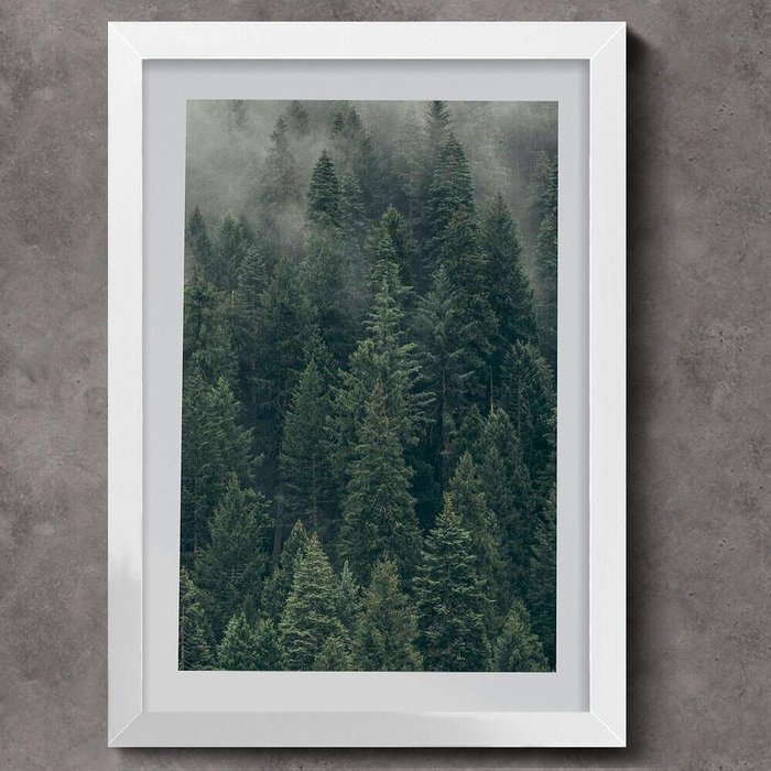 Quadro Decorativo Floresta Pinheiros Neblina-34x49Cm