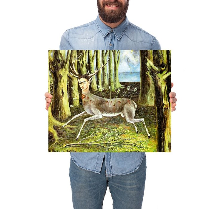 Quadro Decorativo Frida Kahlo O Veado Ferido:Médio 53x44cm/Chassi com Borda Infinita