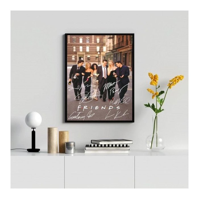 Quadro Decorativo Friends Assinaturas Atores 24x18cm - com Vidro:madeira Branca