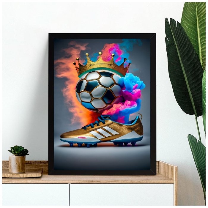 Quadro Decorativo Futebol - Chuteira e Bola 45x34cm:moldura Branca