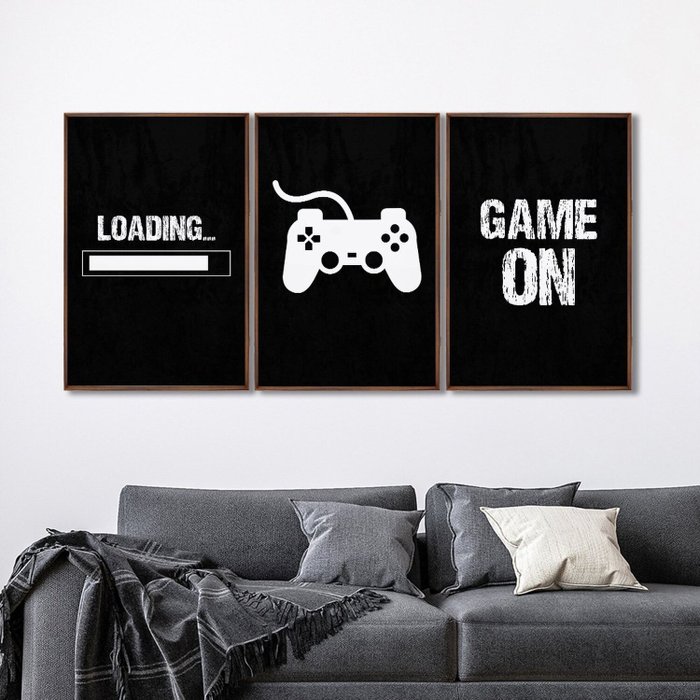 Quadro Decorativo Game On com 3 Telas de Parede para Sala Quarto Escritório 60cm X 90cm Com Vidro Tabaco