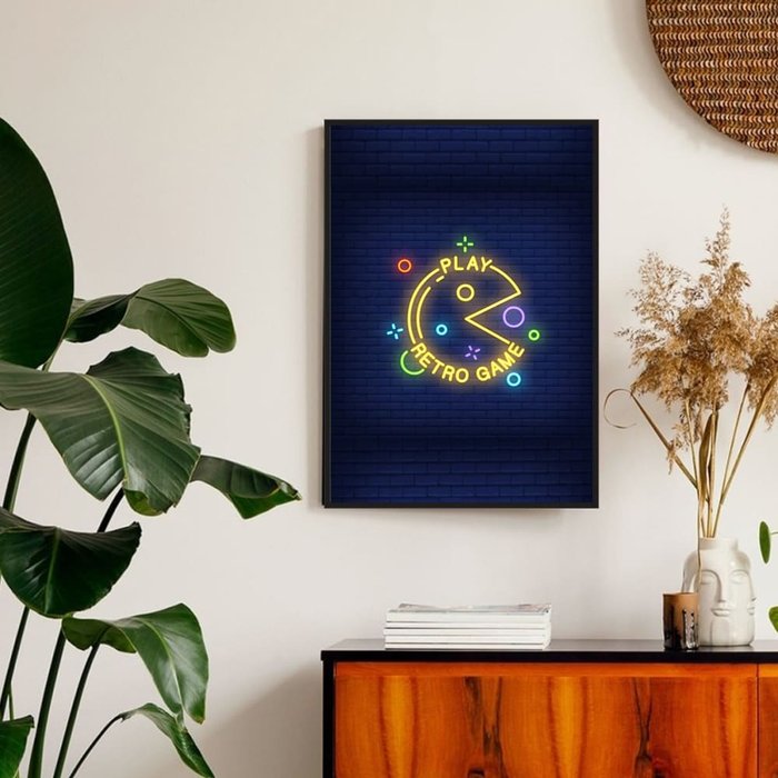 A moldura filete, com seu acabamento minimalista, complementa o design, sendo uma tendência que transforma os Quadros Decorativos Gamer com Moldura Filete em um ponto focal moderno e estiloso ao ambiente.