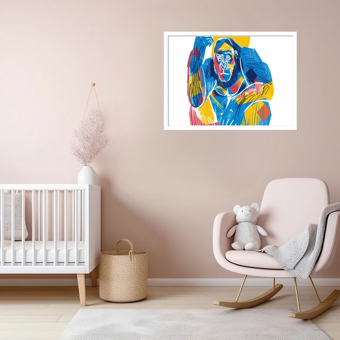 Quadro Decorativo Gorila Pensativo Abstrato - 50x70cm:moldura Branca