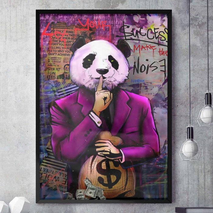 Quadro Decorativo Grafite Panda com Money-24x34Cm
