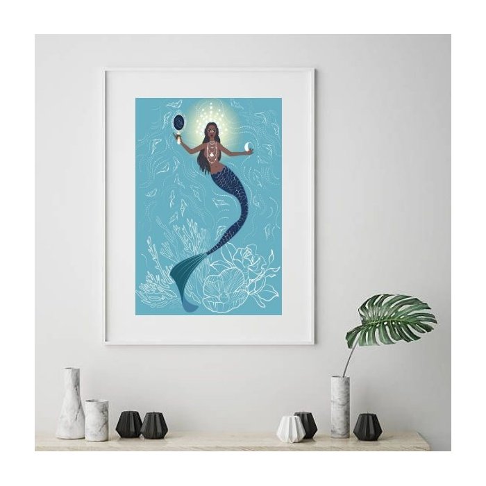 Quadro Decorativo Iemanjá Sereia - 60x48cm:madeira Branca