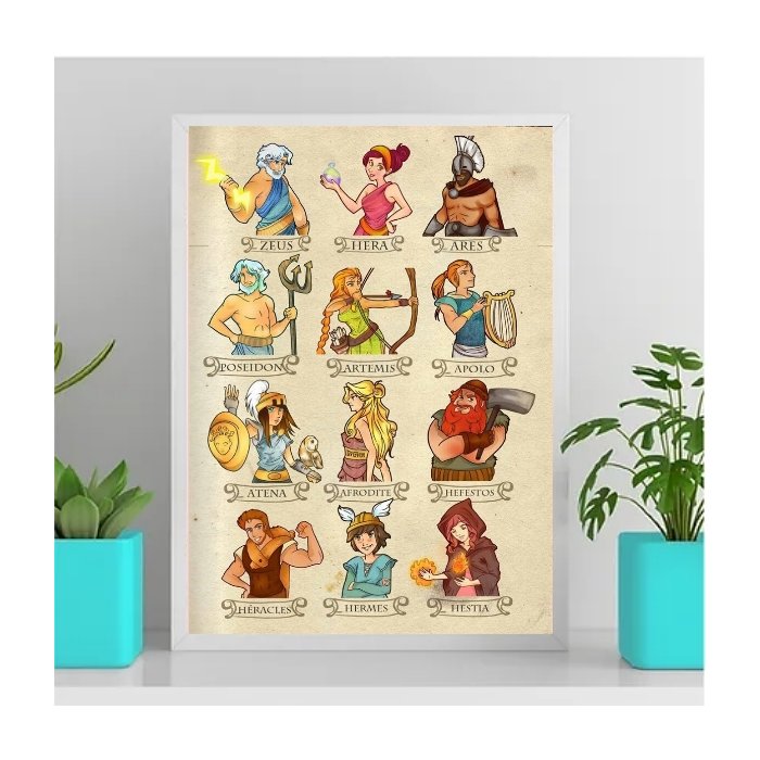 Quadro Decorativo Ilustração Deuses Gregos 33x24cm:madeira Branca