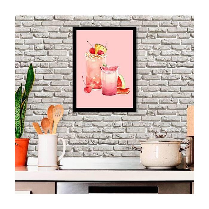 Quadro Decorativo Ilustração Sucos Naturais Rosa