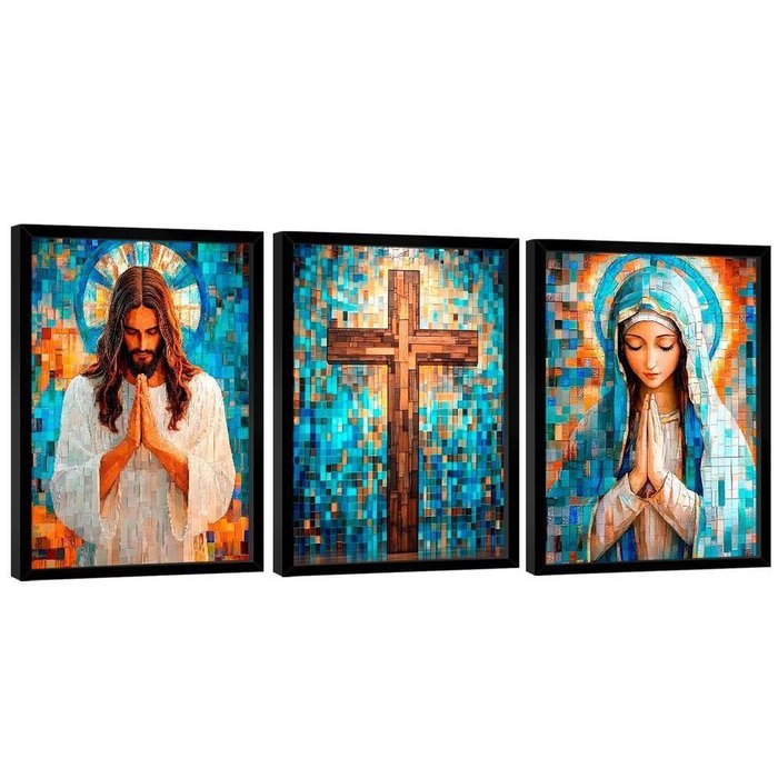 Quadro Decorativo Jesus E Maria Em Grid Art