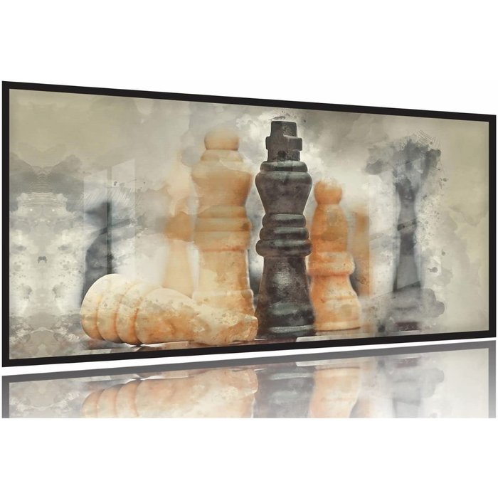 Quadro Decorativo Jogo De Xadrez Para Sala 130x60 Moldura Preta 2x2 Ilustrado