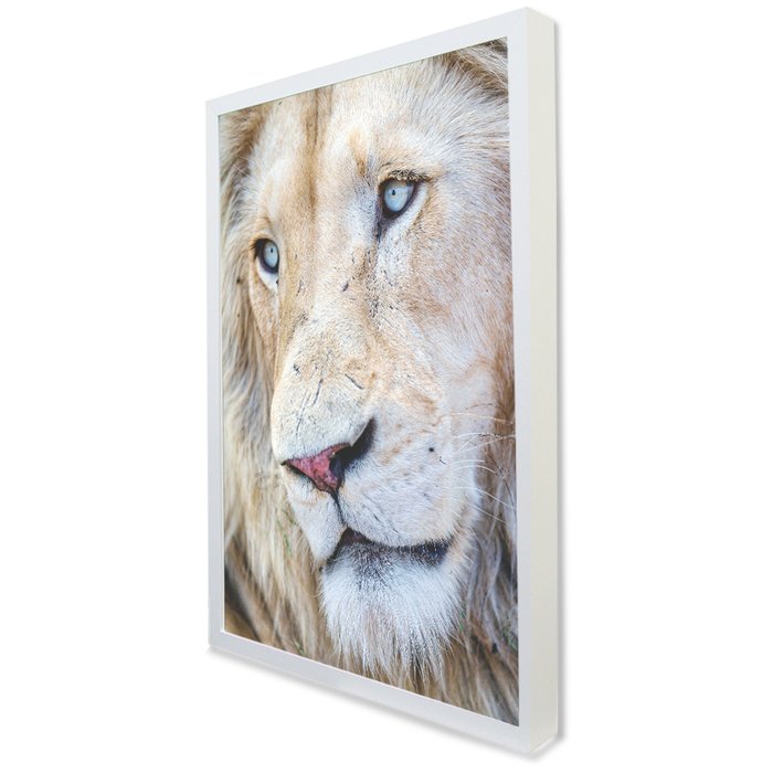 Quadro Decorativo Leão Branco em Moldura Caixa Tacolado Moldura Caixa 3cm Branca sem Vidro 20 X 30cm