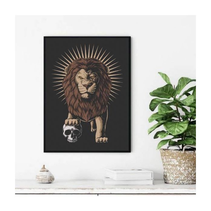 Quadro Decorativo Leão Com Caveira 45x34Cm Moldura Preta