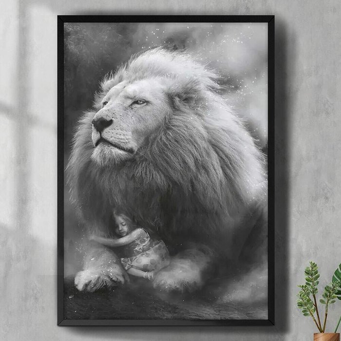 Quadro Decorativo Leão de Judá e Garotinha-34x49Cm