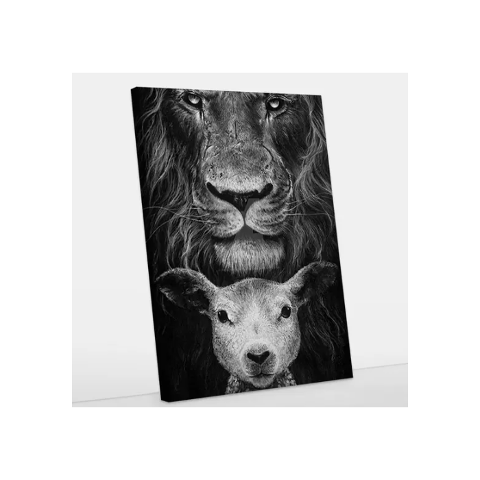 Quadro Decorativo Leão e Cordeiro Canvas 60x90 Foto Paulista