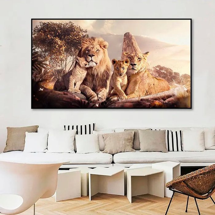 Quadro Decorativo Leão Natureza com Moldura Caixa de 3cm , ideal para Sala de Estar e Quarto
