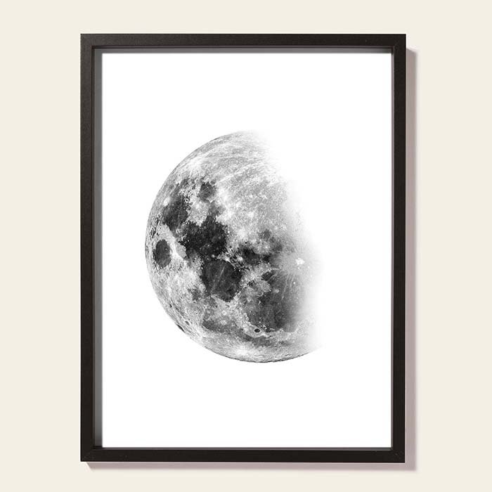 Quadro Decorativo Lua em MDF com Moldura Preta