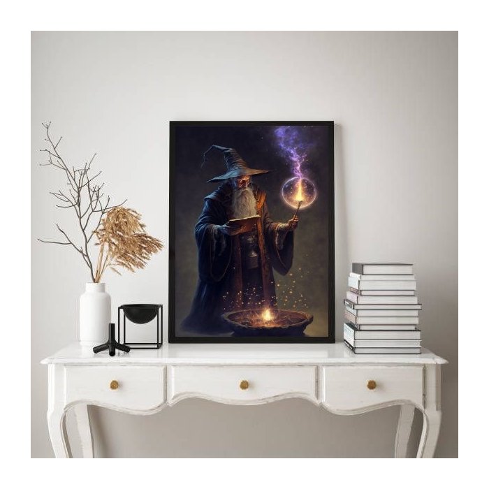 Quadro Decorativo Mago Bruxo 33x24cm:madeira Preta