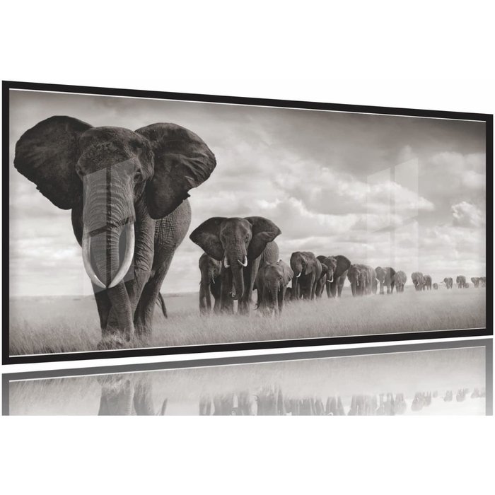 Quadro Decorativo Manada Elefante 130x60 Moldura Preta 2x2 Ilustrado
