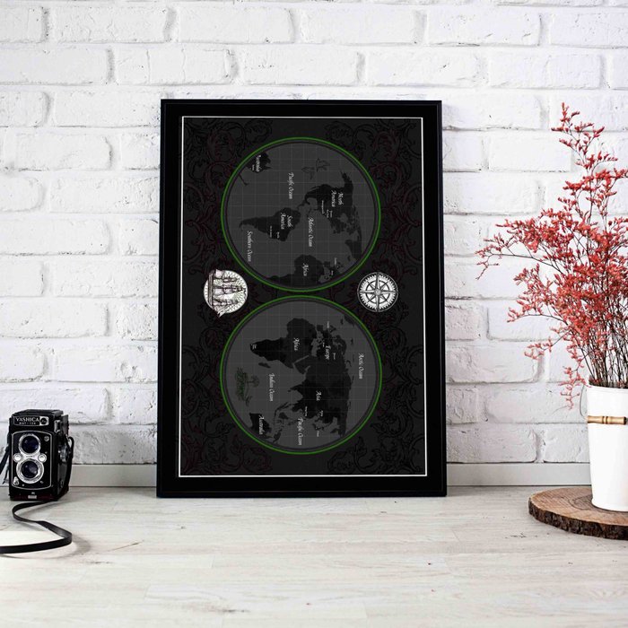 Quadro Decorativo Caixa Alta com Vidro Mapa Navegação