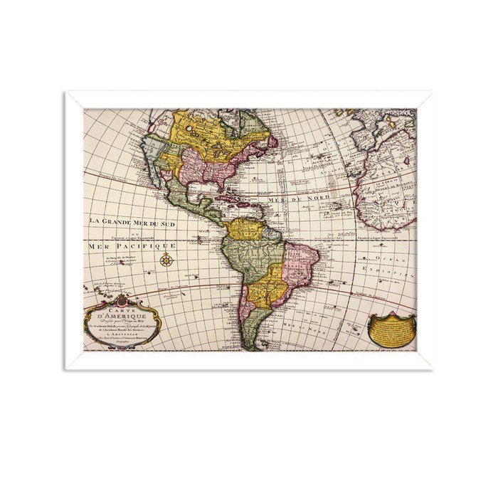 Quadro Decorativo Mapa Mundi America do Norte e America do Sul Branco - Médio -