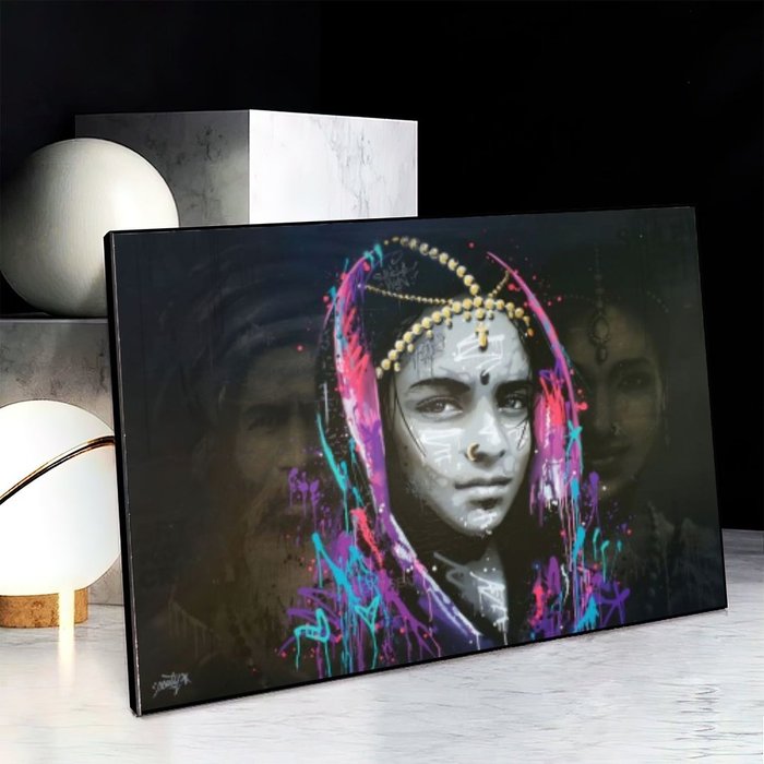 Quadro Decorativo Menina Indiana:90x60 cm/DOURADA