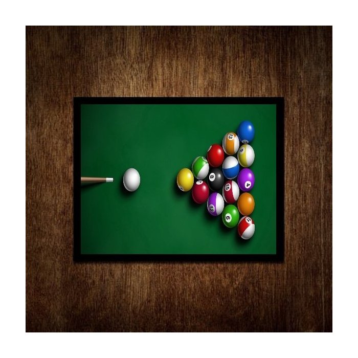 Quadro Decorativo Mesa de Bilhar- Sinuca 45x34cm - com Vidro:madeira Branca