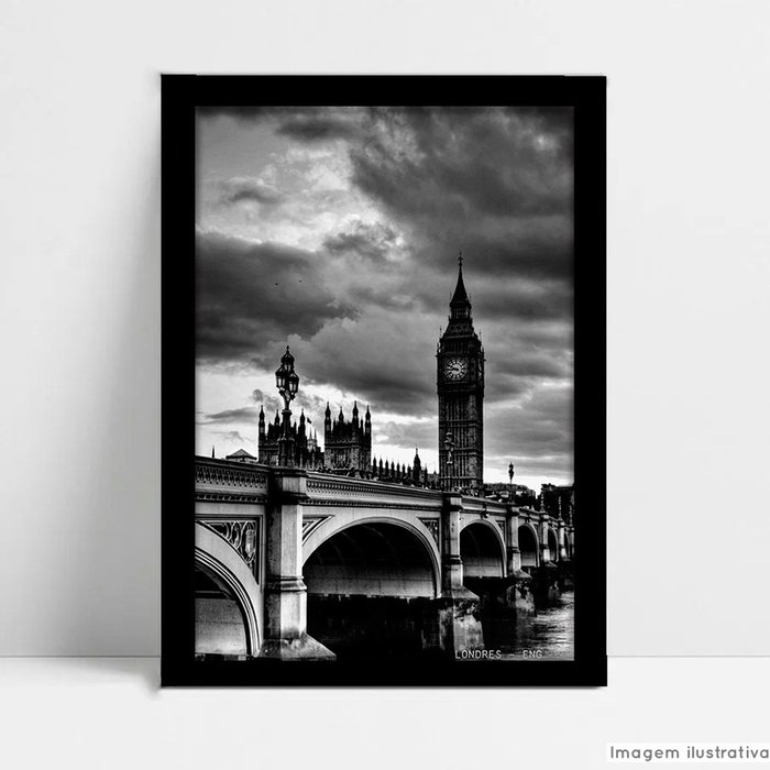 Quadro Decorativo Monumento Cidade Londres em Moldura Caixa Tacolado Moldura Caixa 3cm Freijó sem Vi
