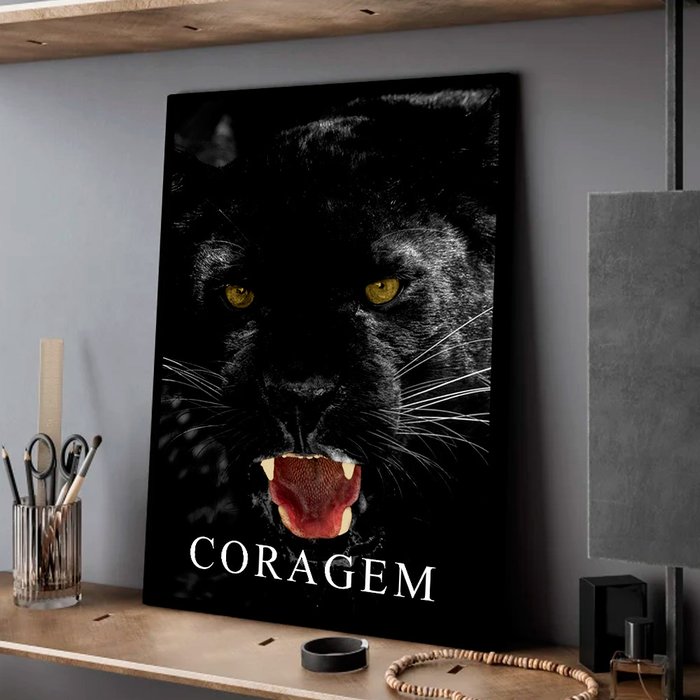 Quadro Decorativo Motivacional Pantera com Coragem em Moldura Caixa