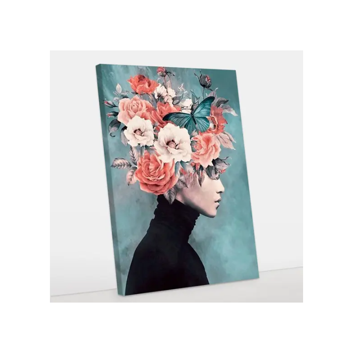 Quadro Decorativo Mulher Cabeça Flores 60x90 50x70 Decoração:60x90