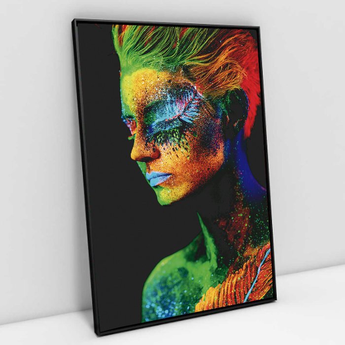 Quadro Decorativo Mulher Colors em Tela Canvas Tacolado Moldura Flutuante 4,5cm Preta 80 X 120cm